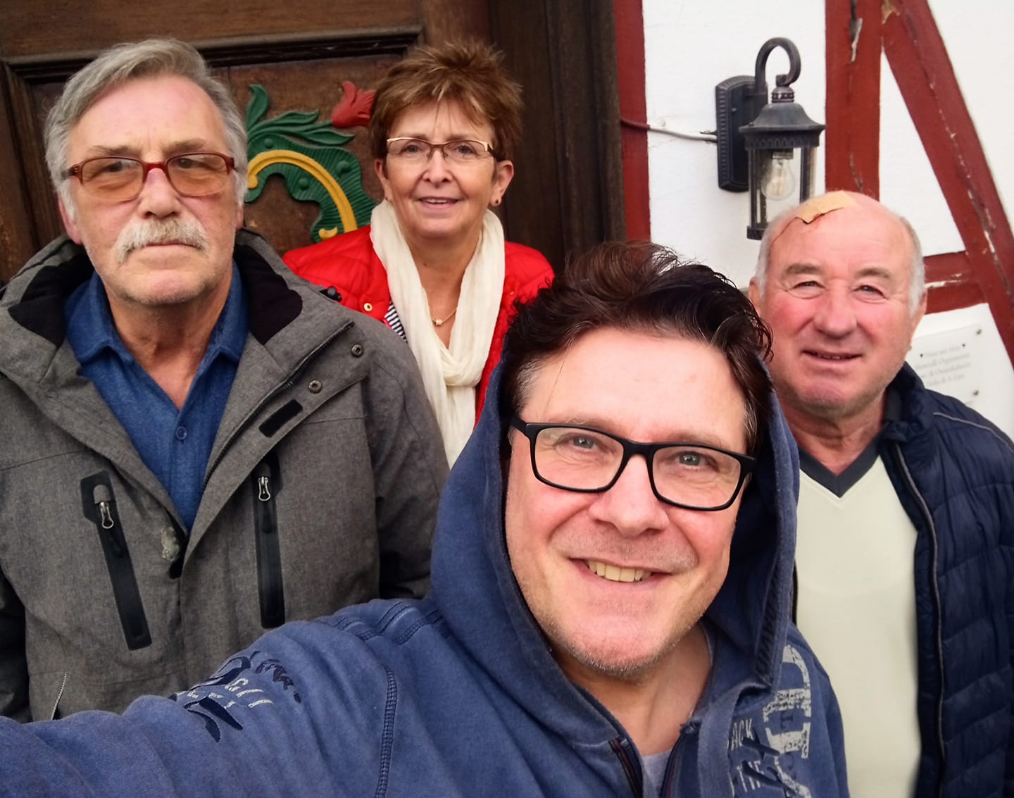 Das Team aus dem Rosarium Sangerhausen und Familie Aderholdt, spendete bei einem Besuch die eigens wieder gezüchtete Frankenfeld Rose.